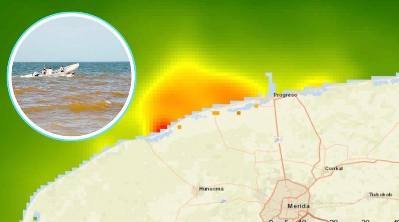 El monitoreo satelital revela la ubicación del manchón y cómo las corrientes marinas han impulsado su desplazamiento desde Dzilam de Bravo hasta el poniente de Yucatán.