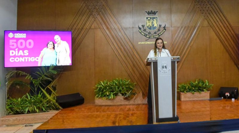 Mérida, Yucatán, a 12 de enero de 2026.- La alcaldesa Cecilia Patrón Laviada expuso que, en los 500 días de su gestión, las mujeres han jugado un papel central y que, entre otras acciones, se realizaron 16 mil 473 atenciones especializadas de atención a la violencia, dirigidas a 2 mil 543 mujeres.