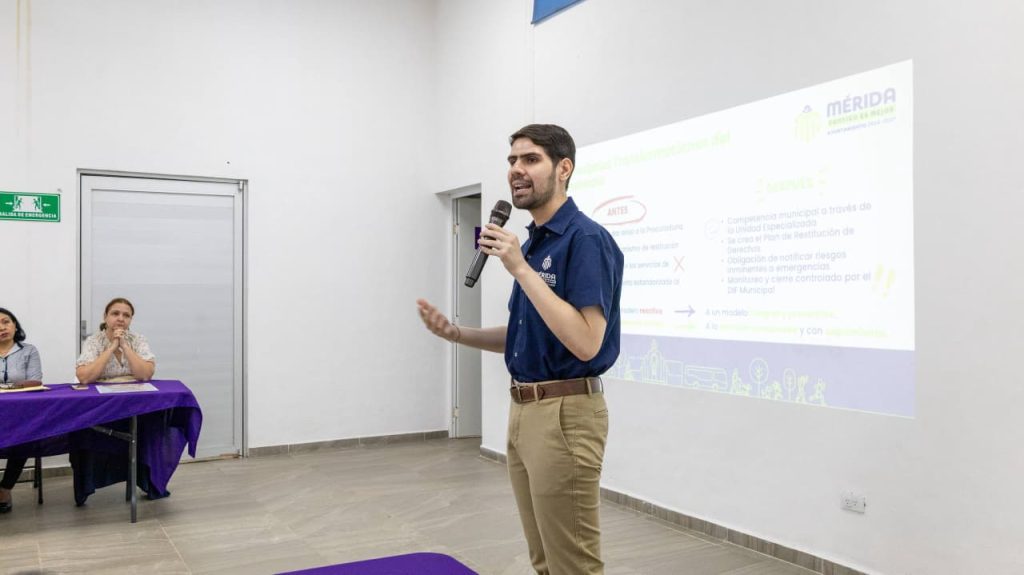 En seguimiento al eje de protección, se presentó la modificación del Protocolo de Actuación del Ayuntamiento de Mérida para la detección de vulneraciones a derechos de niñas, niños y adolescentes. El documento incorpora el Plan de Restitución de Derechos, un instrumento que permitirá articular respuestas más claras e integrales para garantizar el acceso a bienes y servicios indispensables para su bienestar. El fortalecimiento operativo mejora la precisión de los procesos de intervención y optimiza la labor de la Unidad Especializada de Primer Contacto, responsable de atender reportes y situaciones de riesgo inminente.