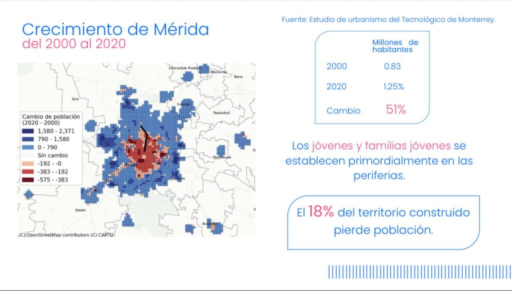 Explicó que Mérida está creciendo a un ritmo acelerado: cada día, en promedio, seis nuevas familias se mudan a la ciudad. En la última década, la capital yucateca ha registrado un aumento poblacional del 22%, el doble del promedio nacional, superando ya el millón de habitantes.