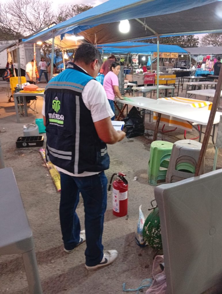Estas acciones también incluyen la revisión de medidas de seguridad, especialmente en puestos de alimentos, donde se supervisa el estado de los tanques de gas, que no deben exceder los 10 kilogramos, la disponibilidad de extintores funcionales y la presencia de botiquines de primeros auxilios.