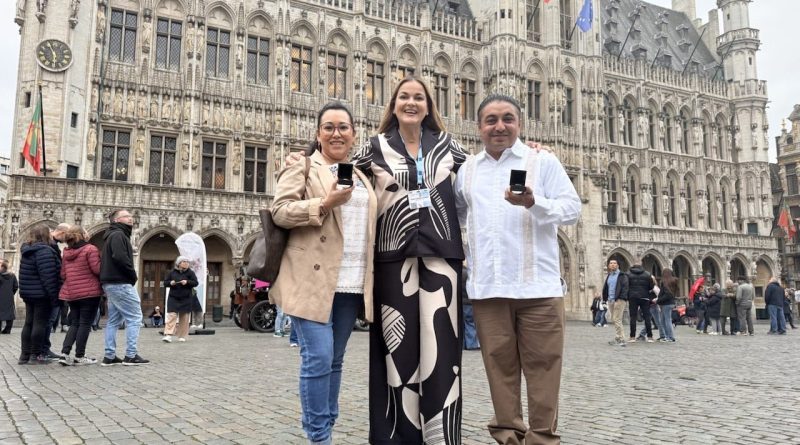 Mérida, Yucatán, a 15 de octubre de 2025.- Durante su participación en la Semana Europea de las Regiones y Ciudades 2025, la alcaldesa de Mérida, Cecilia Patrón Laviada, tuvo un encuentro especial con Allen y Nayeli, dos jóvenes meridanos que desde Bruselas promueven los sabores y tradiciones de Yucatán a través de su negocio gastronómico.