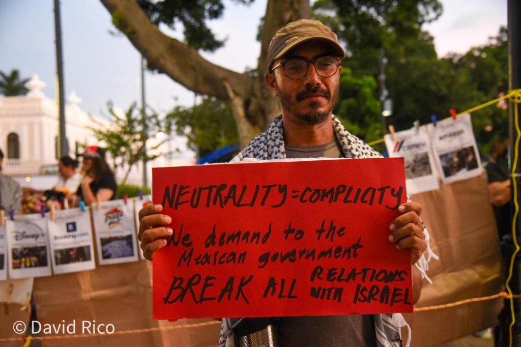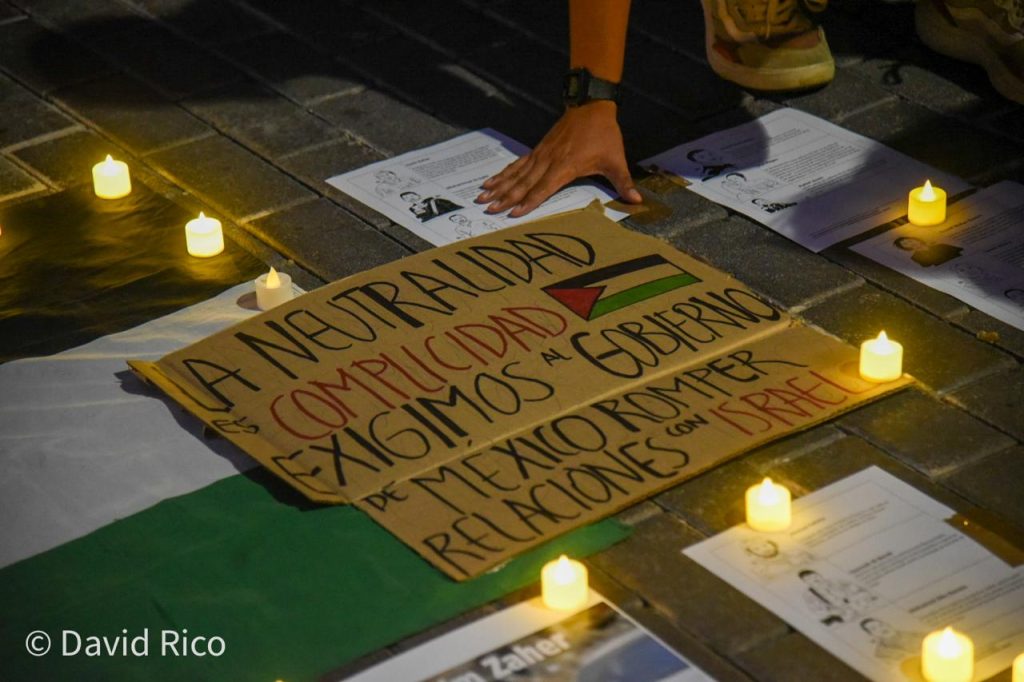 Con la consigna “Neutralidad es complicidad”, los participantes exigieron que el Gobierno de México rompa relaciones con Tel Aviv. Señalaron que la postura oficial de mantenerse neutral ante el conflicto se traduce en complacencia y complicidad frente a una masacre que alcanza a hombres, mujeres, niñas, niños y periodistas.