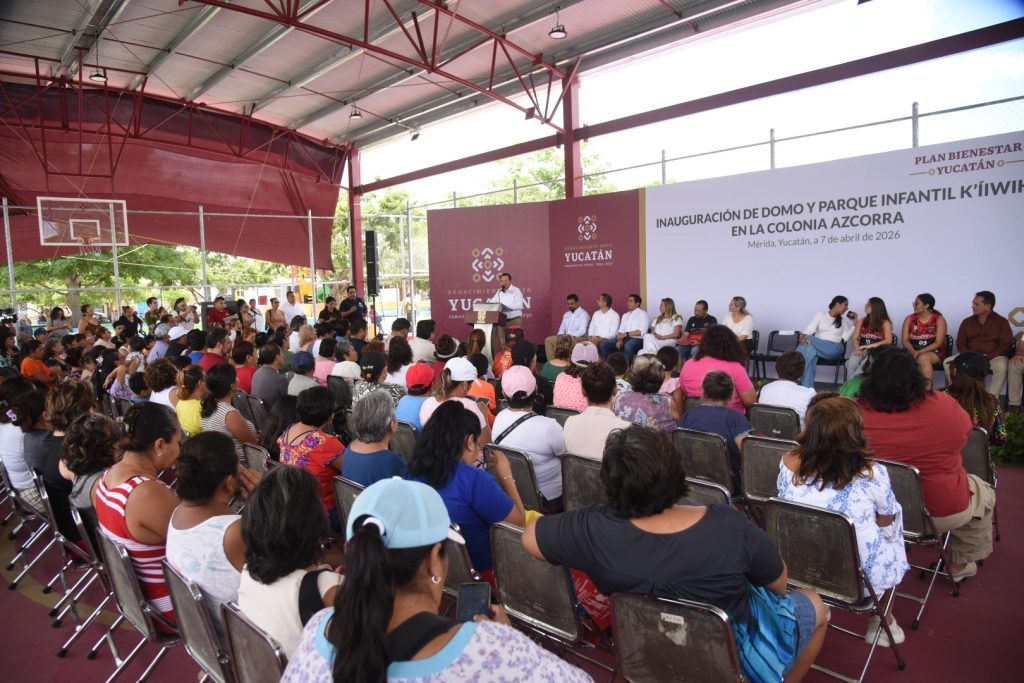 El gobernador Joaquín Díaz Mena respondió a las críticas por invertir en Mérida y entregó un domo y la rehabilitación del parque Kíiwik en la colonia Azcorra, además de reconstruir una escuela, con una inversión superior a 3.5 millones de pesos.