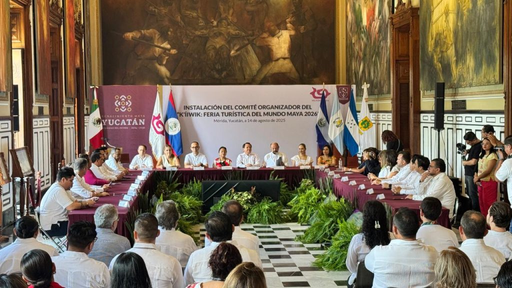 Mérida, Yucatán, 14 de agosto de 2025.- Al instalar el Comité Organizador del K’íiwik, Feria Turística del Mundo Maya 2026, el gobernador Joaquín Díaz Mena señaló que el turismo que se busca no es de corto plazo ni de beneficios aislados, sino uno que no depreda el medio ambiente, que valore la cultura y sea una fuente constante de ingresos para la población.