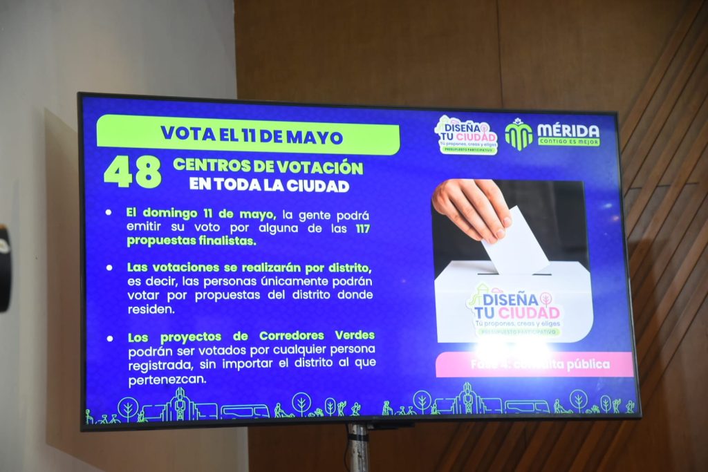 Dijo que las votaciones se llevarán a cabo en 48 centros de votación en los 9 distritos en que se divide Mérida y participarán todas las personas que así lo quieran. Invitó a las personas interesadas a registrarse para votar, aunque no es indispensable, en la página decide.merida.gob.mx