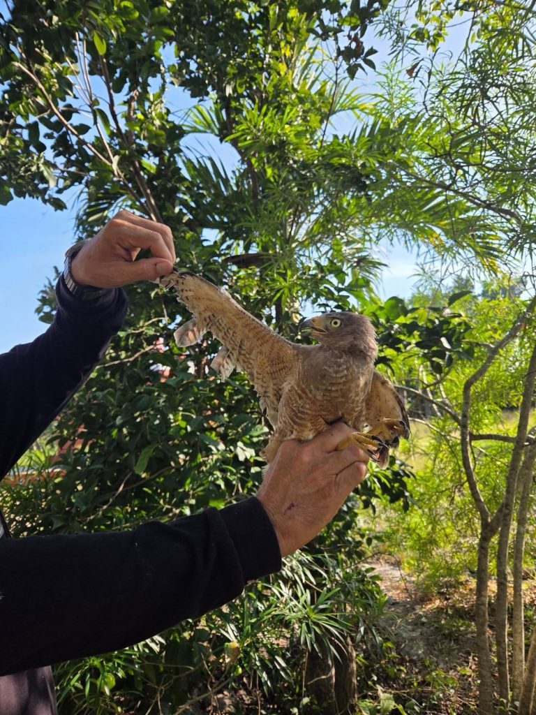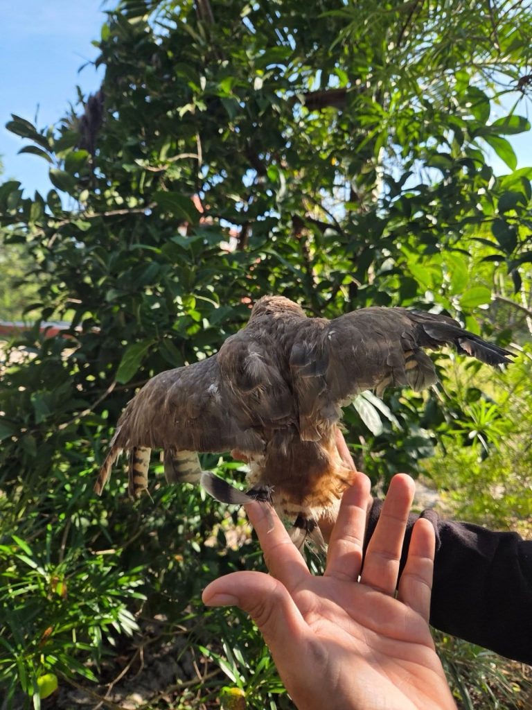 Mérida, Yucatán, a 3 de diciembre 2025.- La agrupación Proyecto Santa María encendió nuevamente las alertas sobre la violencia contra la fauna silvestre tras recibir un ejemplar de aguililla caminera (Rupornis magnirostris) con las plumas de las alas cortadas para impedirle volar y mantenerla “como si fuera un ave de corral”.