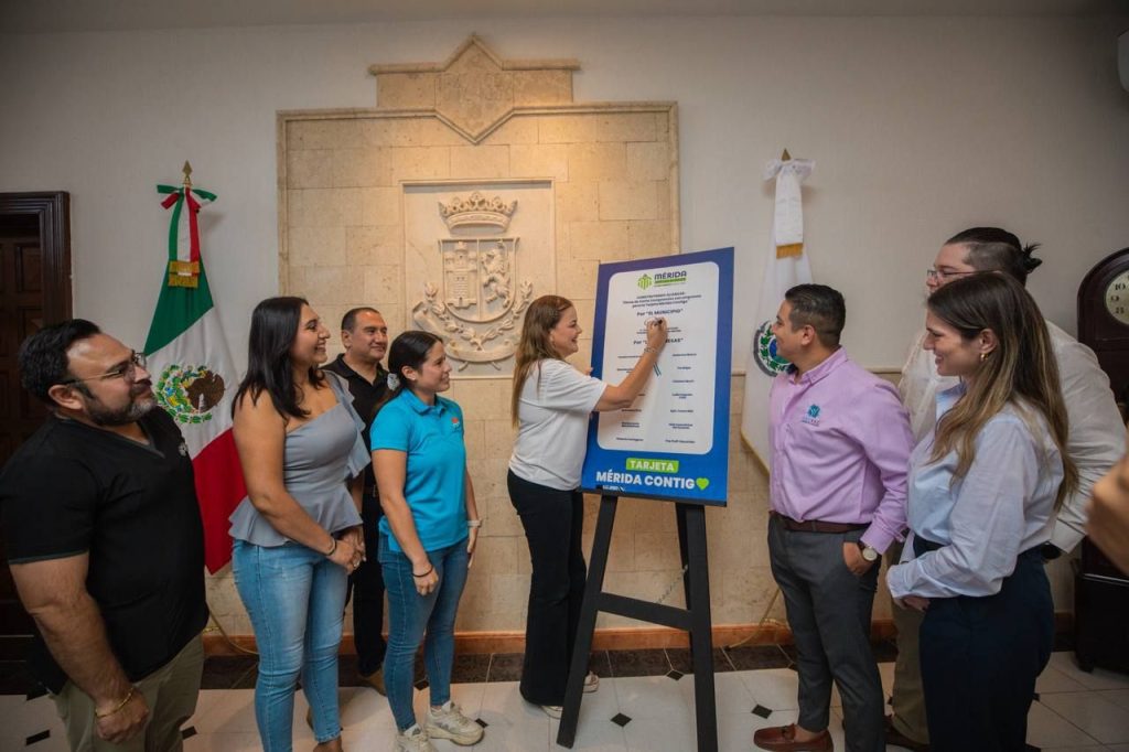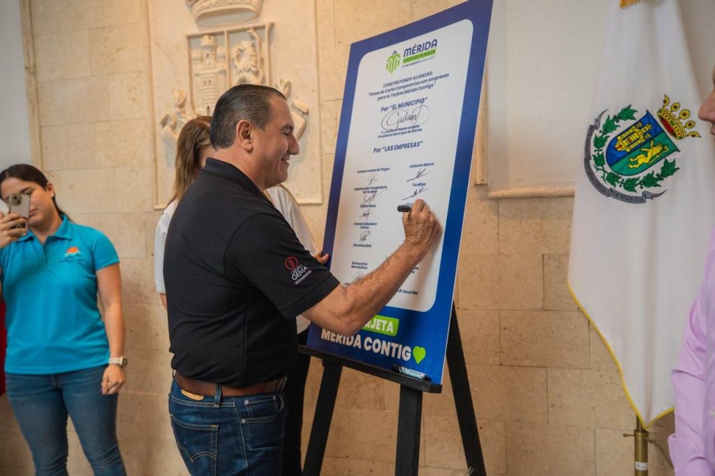 Cecilia Patrón firmó la carta compromiso Tarjeta Mérida Contigo para que empresas den precios especiales y promociones exclusivas en sus productos y servicios.