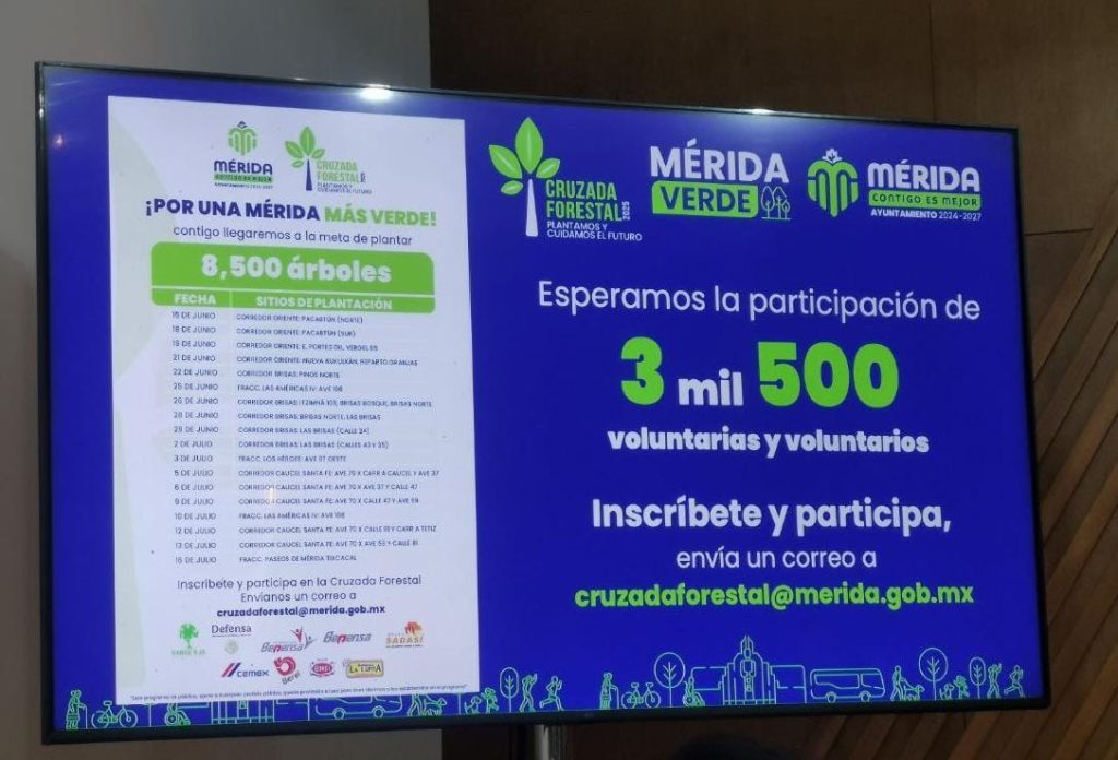 La Cruzada Forestal arrancará el 15 de junio en el corredor oriente Pacabtún (norte); en total serán 18 días en sitios diferentes de plantación. La última fecha será el 16 de julio en el Fraccionamiento Paseos de Mérida en Tixcacal.