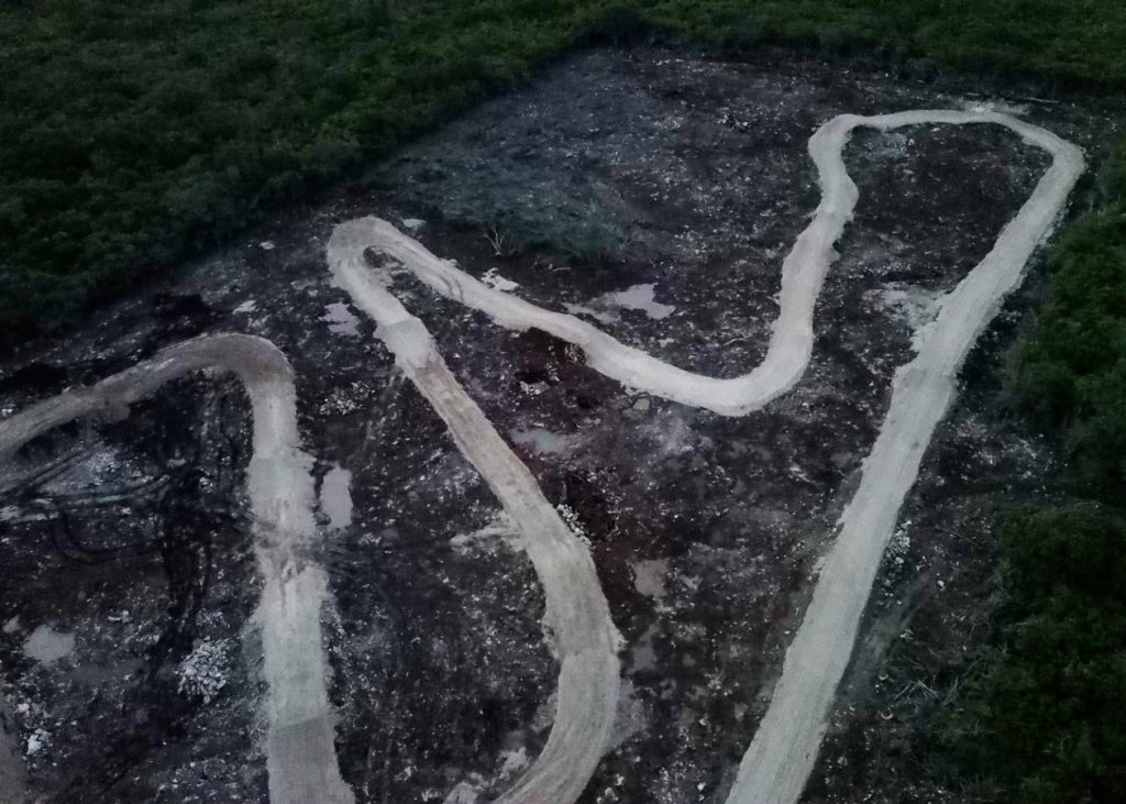En el terreno se identificaron vialidades de material pétreo, nivelación del suelo y un circuito cerrado con obstáculos, saltos y curvas pronunciadas, diseñado para la práctica del motocross. Estas actividades implican una modificación al terreno forestal, por lo que, de acuerdo con la legislación ambiental, requieren autorización previa de cambio de uso de suelo.