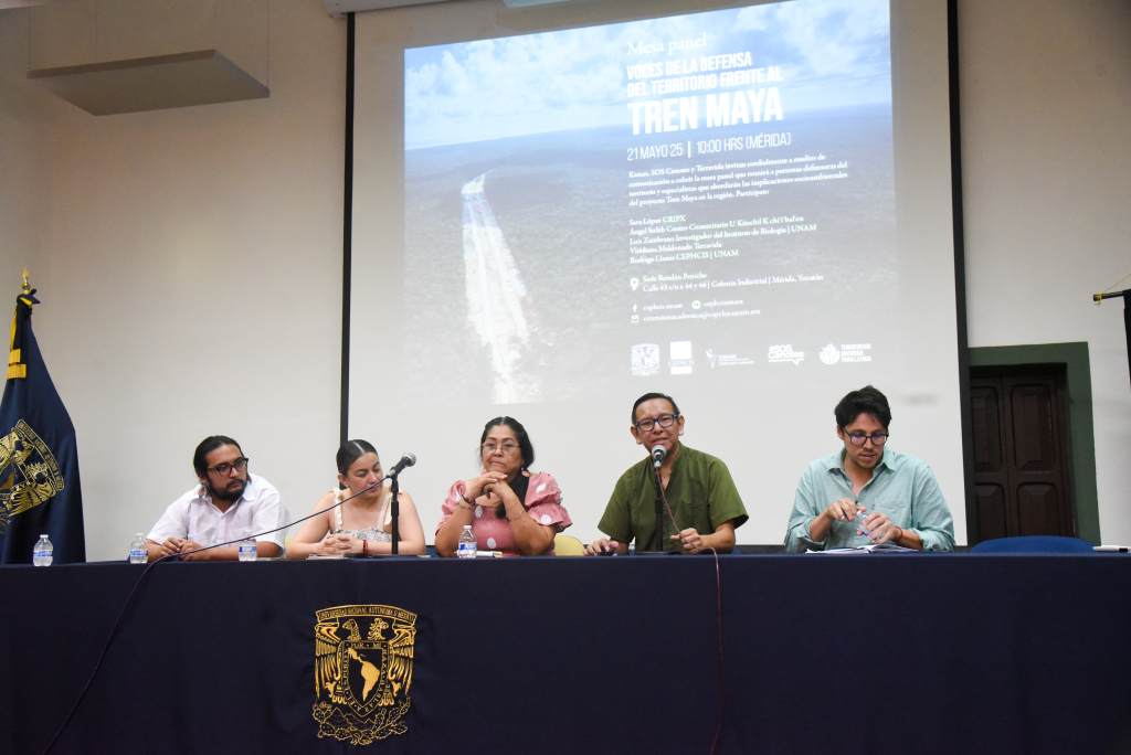 Lo anterior, durante su participación en la Mesa Panel “Voces de la defensa del territorio frente al Tren Maya” que se llevó a cabo en el Centro Peninsular en Humanidades y Ciencias Sociales (CEPHCIS) de la UNAM.