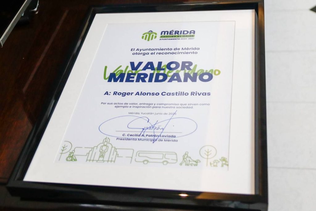 Mérida, Yucatán, 17 de junio 2025.- Por su excepcional pericia, temple y profesionalismo, la alcaldesa de Mérida, Cecilia Patrón Laviada, entregó el reconocimiento como «Valor Meridano» al Capitán Roger Alonso Castillo Rivas, piloto aviador que salvó la vida de 215 personas a bordo del vuelo VB755 de la línea aérea Vivaaerobus.