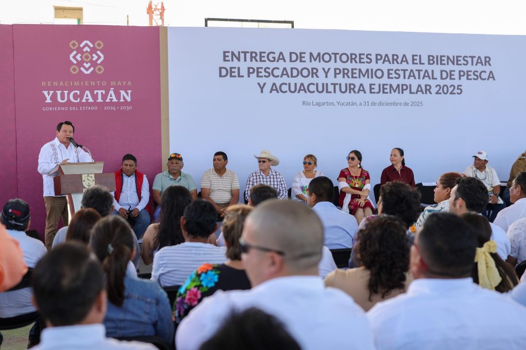 Río Lagartos, Yucatán, miércoles 31 de diciembre de 2025.— Con la entrega de 177 motores fuera de borda, el gobierno estatal reactivó un apoyo que llevaba años detenido y que busca dar mayor seguridad a las y los pescadores, además de reducir costos y mejorar la productividad. La inversión supera los 16 millones de pesos y marca el regreso del programa Motores para el Bienestar del Pescador.