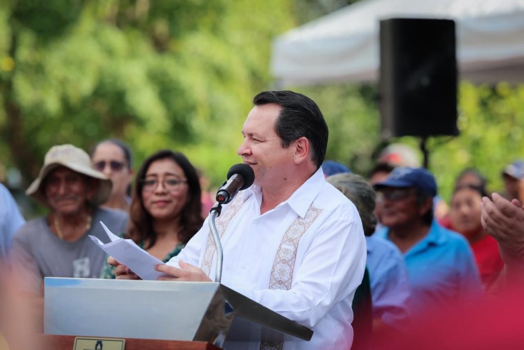 Durante el acto también se informó que se están rehabilitando el sistema de captación y bombeo de agua potable con una inversión de 3.3 millones de pesos, y que se construyen 31 viviendas por medio del Programa Construyendo Bienestar, con una derrama de 3.9 millones de pesos. Además, la presidenta municipal, Rubí Aké Chávez, donó un terreno donde en 2026 se construirán 50 viviendas completas como parte del programa Viviendas para el Bienestar.