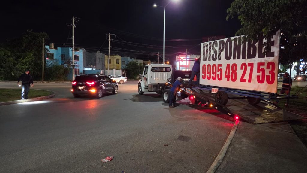 Durante el operativo, encabezado por la Coordinación General de Buen Gobierno y la Dirección de Desarrollo Urbano, se utilizaron camionetas y dos grúas para desmontar cuatro remolques publicitarios de grandes dimensiones, además de seis vallas y 15 lonas instaladas fuera de la norma, entre las calles 35 x 28D y 41 de la zona.