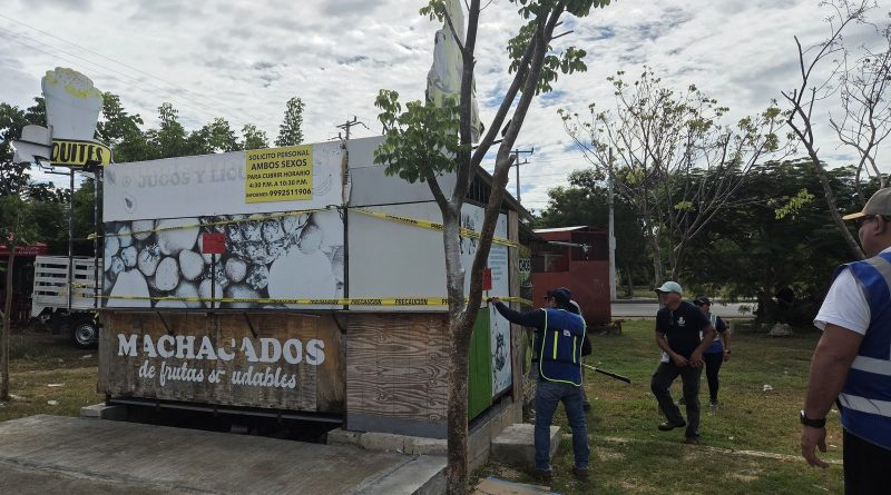 En el primer operativo, llevado a cabo en la colonia Polígono Itzimná 108, se retiraron tres locales instalados bajo torres de energía eléctrica de la Comisión Federal de Electricidad (CFE), una ubicación que representaba un riesgo para quienes acudían a consumir alimentos.