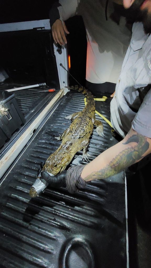 El cocodrilo, perteneciente a la especie Crocodylus moreletii, representaba un riesgo potencial para las nidadas de tortuga marina, así como para los visitantes y habitantes del área. Por ello, el Departamento de Conservación Ambiental de la SDS coordinó un operativo de captura controlada y segura, empleando lazos tipo Thompson, cuerdas de alta resistencia y técnicas especializadas de contención física para garantizar la integridad tanto del animal como del personal participante. Las labores se realizaron durante la noche, momento idóneo para su localización.