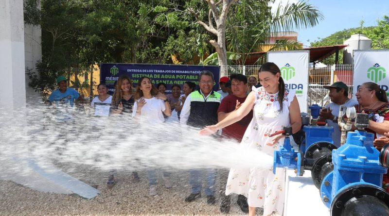 Mérida, Yucatán a domingo, 25 de mayo de 2025.- La presidenta municipal de Mérida, Cecilia Patrón Laviada, entregó el sistema de agua potable en la comisaría, asegurando el acceso a este recurso fundamental para la vida y el bienestar humano.