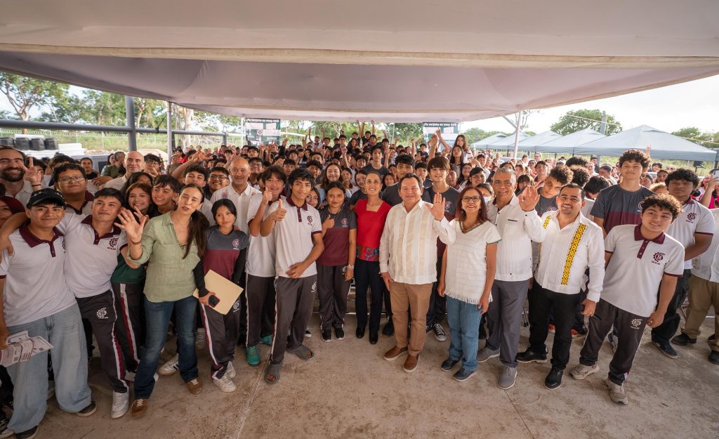 Durante su gira por Yucatán, la presidenta de México, Claudia Sheinbaum Pardo, y el gobernador Joaquín Díaz Mena desarrollaron una agenda de trabajo que incluyó la entrega de tarjetas del Bienestar a estudiantes beneficiarios de la Beca Benito Juárez del Cbtis 305 de Ciudad Caucel, así como la supervisión de la construcción del nuevo edificio que albergará a este plantel, ubicado al poniente de Mérida.