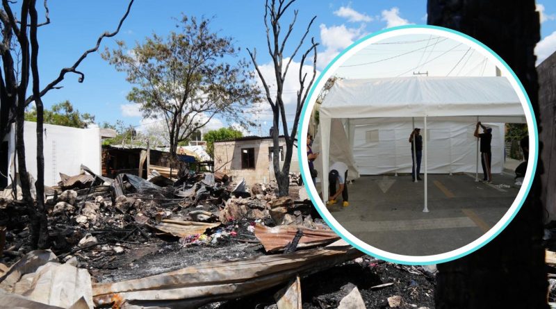 Tras incendio en Dzununcán, instalan refugios y entregan apoyos