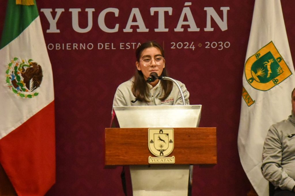 Tras entregar el estandarte de Yucatán, los alentó a competir con dignidad, disfrutar cada momento y recordó que “Yucatán entero está pendiente de ustedes, llevan detrás a sus familias, a su comunidad y a un pueblo que los quiere”.
