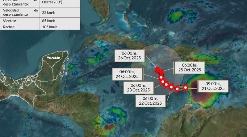 Mérida, Yucatán a 21 de octubre de 2025.- Aunque la tormenta tropical Melissa no representa riesgo para Yucatán, autoridades estatales mantienen una estrecha vigilancia sobre su evolución en el Mar Caribe debido a su cercanía y posible cambio de trayectoria.