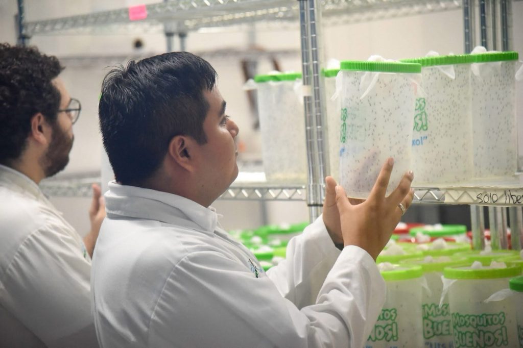 En la visita, el gobernador y el funcionario federal realizaron un recorrido por las áreas del laboratorio de mosquitos buenos, el cual forma parte de una estrategia a través de la cual se busca reducir la población del Aedes aegypti —mosquito transmisor del dengue, zika y chikungunya— mediante el uso de ejemplares portadores de Wolbachia, una bacteria natural que disminuye su capacidad para propagar virus.