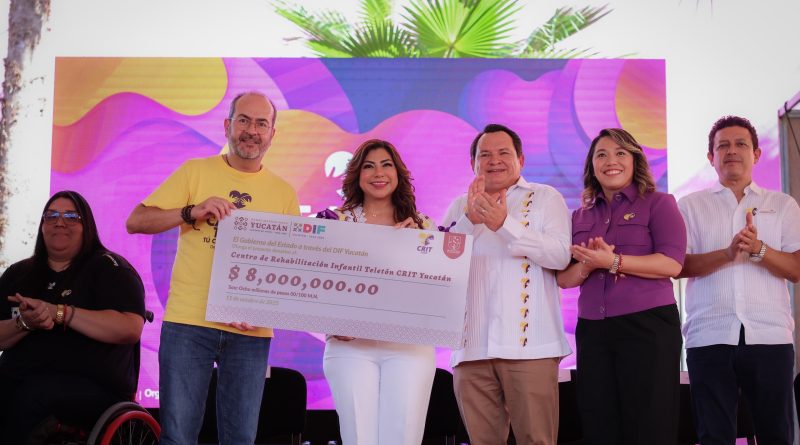 Mérida, Yucatán, 12 de octubre de 2025.- El impulso a la atención integral de niñas y niños con autismo en Yucatán da un nuevo paso. Durante el evento Teletón 2025, el gobernador Joaquín Díaz Mena y la presidenta del DIF Yucatán, maestra Wendy Méndez Naal, entregaron un donativo de ocho millones de pesos al CRIT Yucatán, como parte del compromiso de fortalecer los servicios de rehabilitación e inclusión social en el estado.