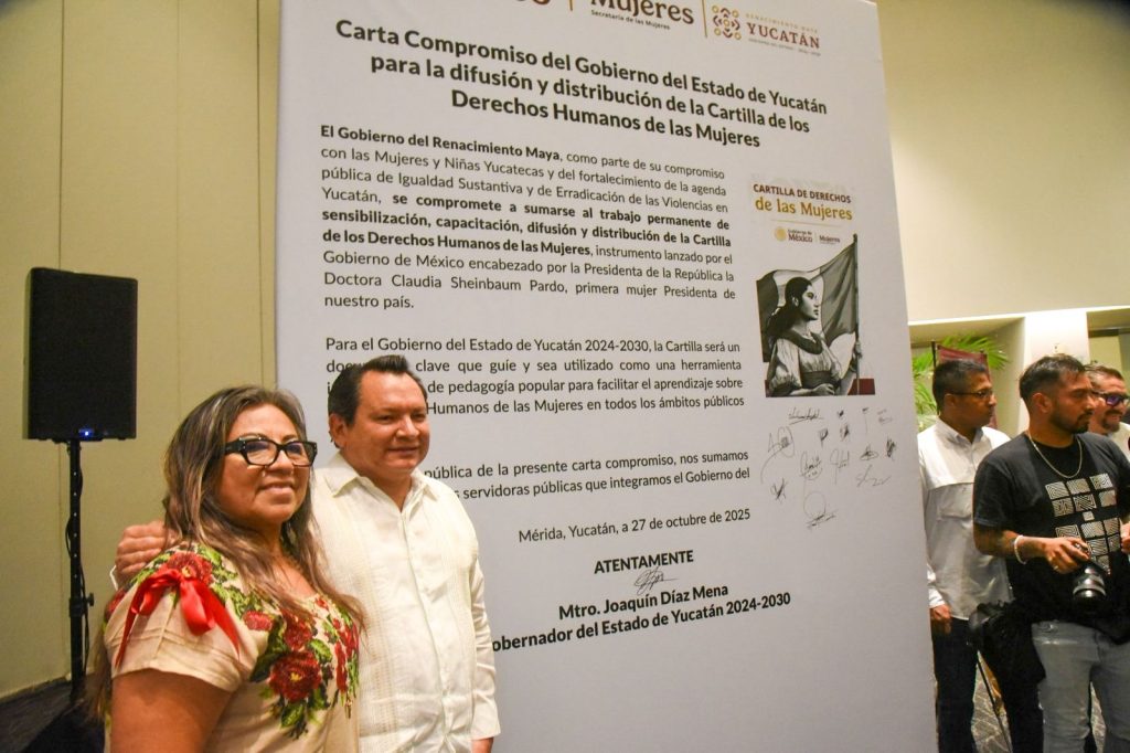 Mérida, Yucatán, a 27 de octubre de 2025.- El Gobierno del Renacimiento Maya, encabezado por el gobernador Joaquín Díaz Mena, firmó el compromiso de difundir y distribuir la Cartilla de Derechos de las Mujeres, una iniciativa impulsada por la presidenta de México, Claudia Sheinbaum Pardo, que busca garantizar el bienestar, la libertad y la dignidad de las mexicanas.