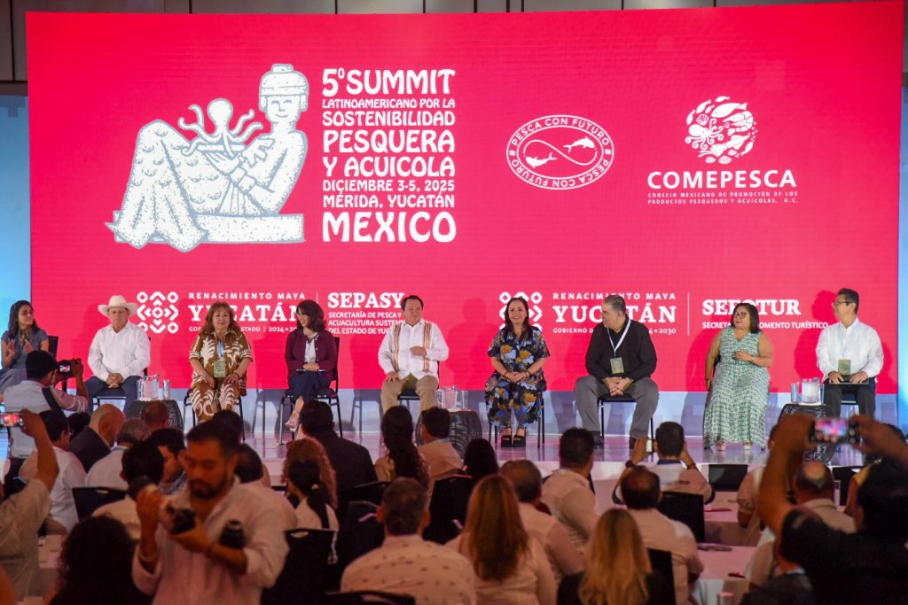 Mérida, Yucatán, a 4 de diciembre de 2025.- El impulso a una agenda regional para una pesca sostenible, con cooperación internacional y enfoque científico, marcó el inicio del 5º Summit Latinoamericano sobre Sostenibilidad Pesquera y Acuícola inaugurado en Mérida, donde representantes de 16 países y 17 estados del país analizarán el futuro de los mares frente a la presión climática, económica y ambiental.