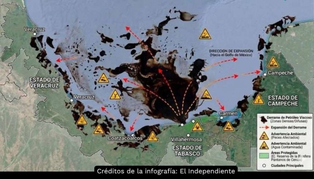De acuerdo con información difundida por la organización y por la Red Corredor Arrecifal del Golfo de México, el derrame habría alcanzado aproximadamente 630 kilómetros de línea de costa, lo que abarcaría la totalidad del Corredor Arrecifal del Suroeste del Golfo de México.