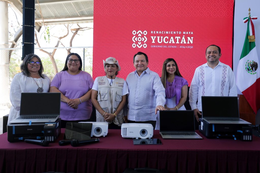 En presencia de la secretaria de las Mujeres del Gobierno de México, Citlalli Hernández Mora, el Gobernador Joaquín Díaz Mena entregó computadoras portátiles, impresoras, tabletas electrónicas, proyectores audiovisuales y otros equipos tecnológicos, con una inversión de más de dos millones de pesos, como parte del Programa Federal de Atención Integral para el Bienestar de las Mujeres (Paibim).