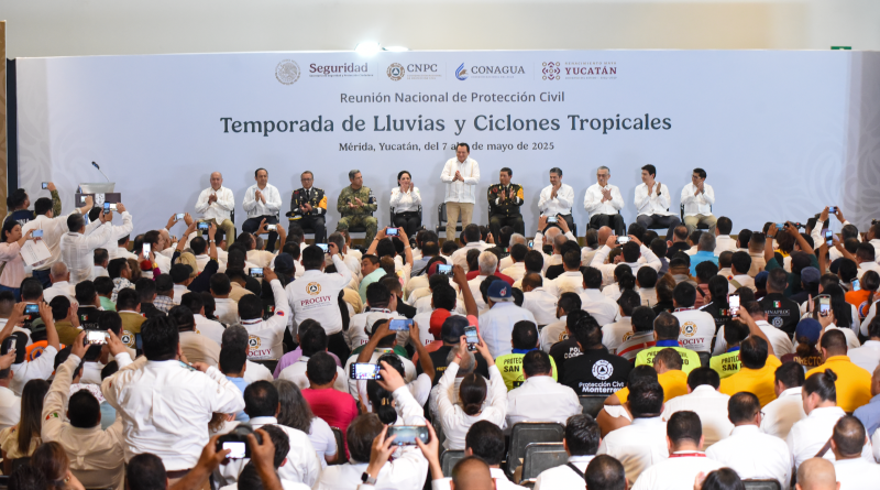 Mérida, Yucatán, 07 mayo de 2025.- A fin de establecer acciones de preparación y prevención coordinadas entre los tres niveles de gobierno, así como con autoridades militares, ante el inicio de la Temporada de Lluvias y Ciclones Tropicales de este año, se lleva a cabo esta reunión nacional en la que participan los directores de Protección Civil de todas las 32 entidades del país, así como de los 106 municipios de Yucatán.
